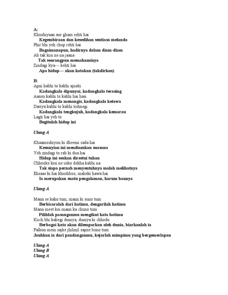 Berikut cuplikan syair nyanyian teks dari lagunya. Senarai lagu hindustan terbaik sepanjang zaman yang pasti mengimbau memori lama. The duration of song is 0358.