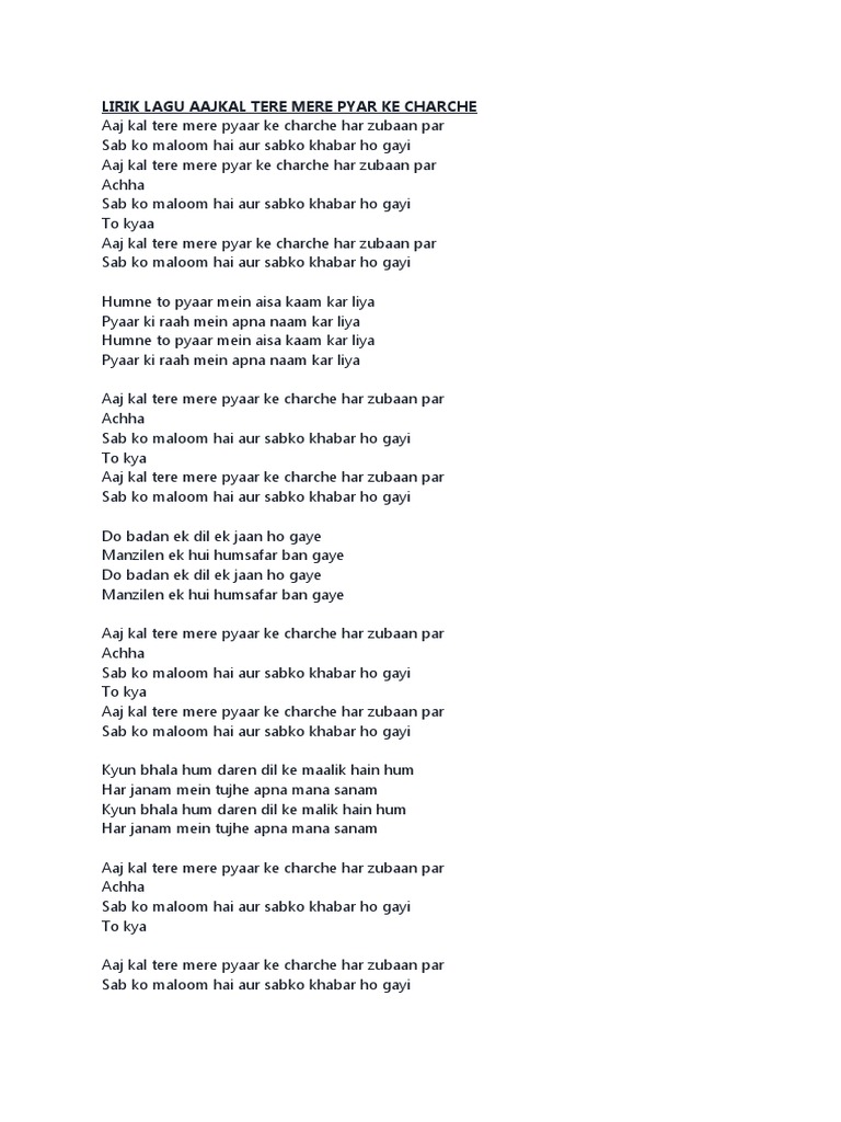 Lirik Lagu Ajkal Tere Mere Pyar Ke Charche Pdf